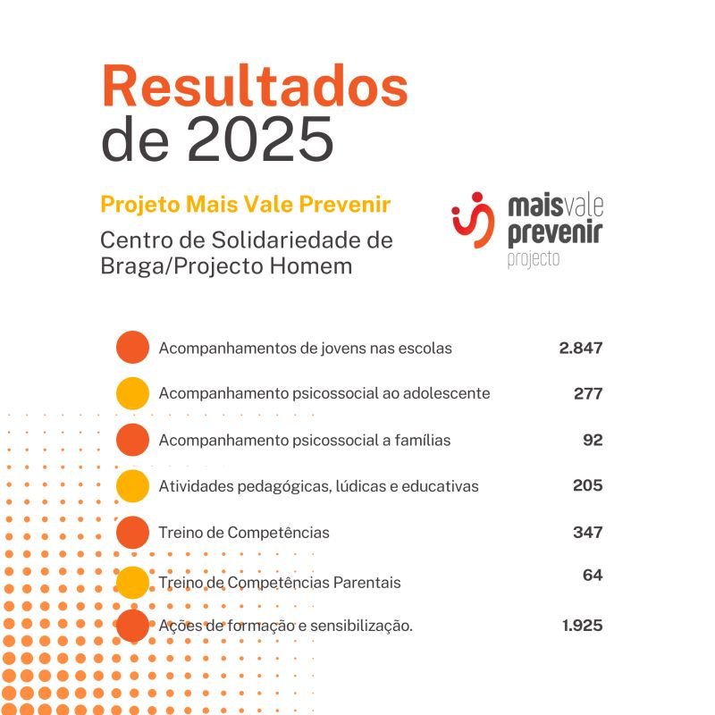 O Projeto Mais Vale Prevenir, resposta na área da prevenção de comportamentos de risco e adições implementado pelo Projecto Homem no concelho de Famalicão, em parceria com o município acompanhou um total de 8633 durante o ano de 2024.