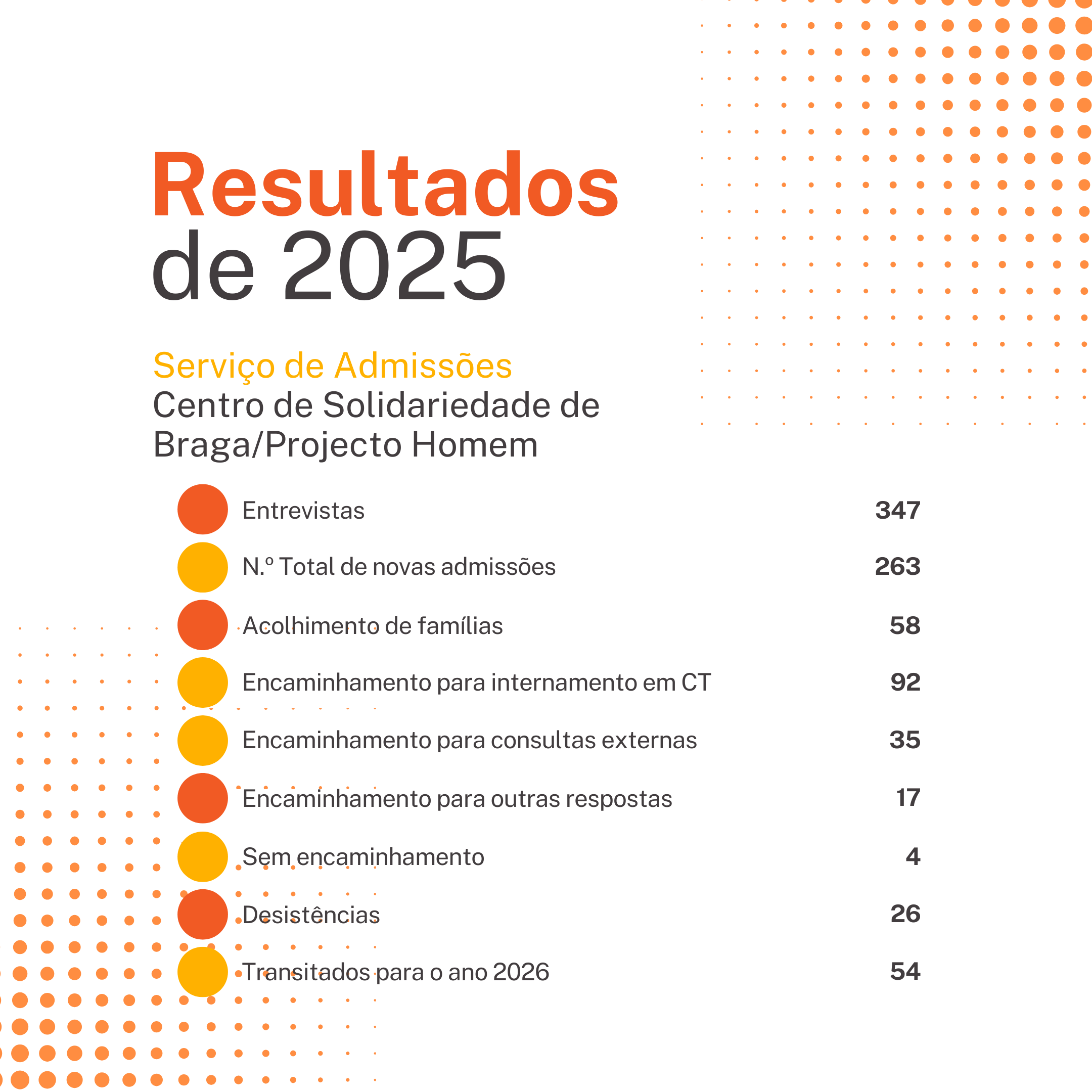 Durante o ano de 2025 foram realizadas 347 entrevistas pelo Serviço de Admissões do Projecto Homem de Braga